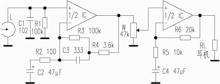 该电路采用双电源供电,电压可在±1.5V到±3V之间选择。由于省去了耦合电容,加上TDA1308的高信噪比使背景噪声几乎听不到,故音质非常通透清晰。